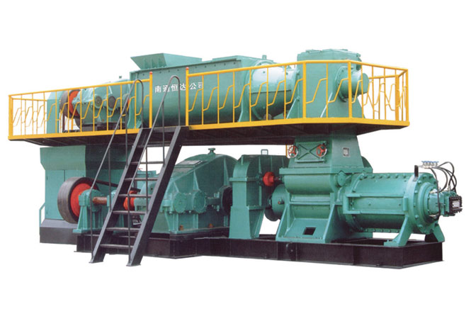 該機采用上、下級單獨傳動,上級采用單軸攪拌,箱體采用鋼板焊接,擠出壓力大,適用于高孔洞率,薄壁多孔的頁巖,煤矸石、粘土磚的硬塑成型。