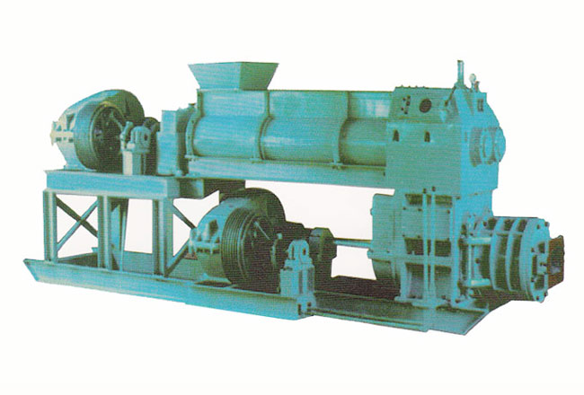 本機適用于磚瓦生產(chǎn)成型工段,可將經(jīng)過處理的原料經(jīng)上級攪拌增塑、擠壓割碎后落入真空室抽取空氣后再經(jīng)下級擠成規(guī)定斷面形狀的實心或多孔坯條,經(jīng)切坯機切制成一定規(guī)格的磚坯。該機是生產(chǎn)實心磚和空心磚的關(guān)鍵設(shè)備。